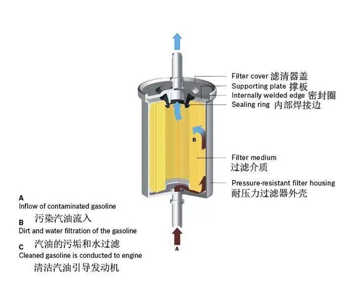 If the gasoline filter is dirty or clogged. In-line filter paper gasoline filter: The gasoline filter is inside this type of gasoline filter. The folded filter paper is connected to the two ends of the plastic or metal filter. After the dirty oil enters, it passes through layers of filter paper from the outer wall of the filter. After filtering, it reaches the center and clean fuel flows out.